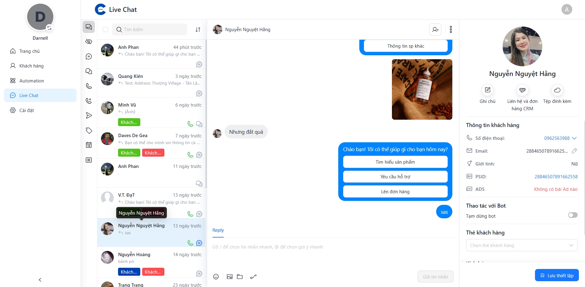 SolChat là phần mềm quản lý bán hàng và chăm sóc khách hàng đa kênh từ dự án Vina AI, với một loạt các tính năng thông minh và tiện lợi.