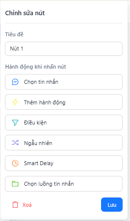 + Chọn tin nhắn: Người dùng có thể tạo các mẫu tin nhắn để gửi cho khách hàng sau khi khách hàng click button.