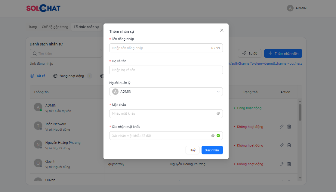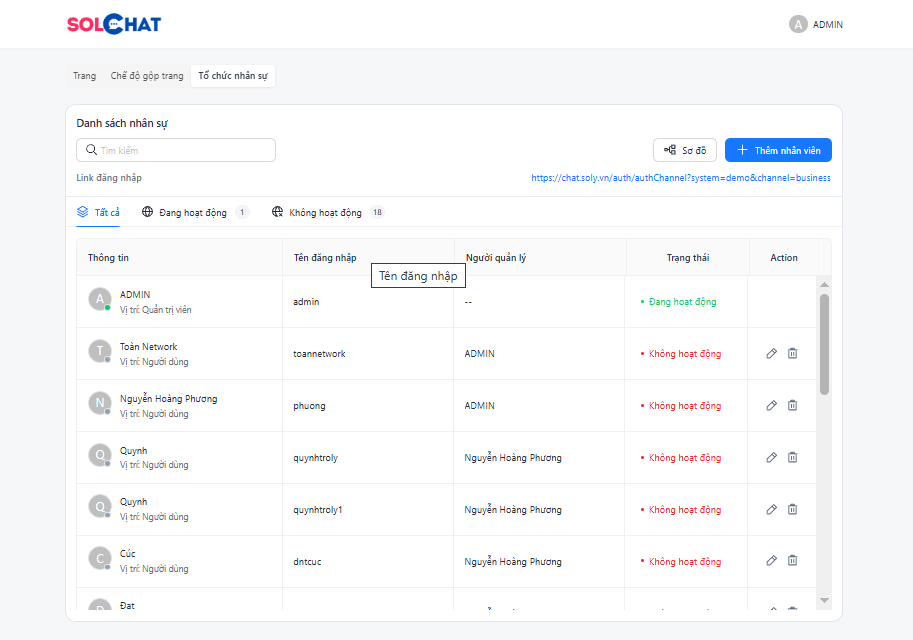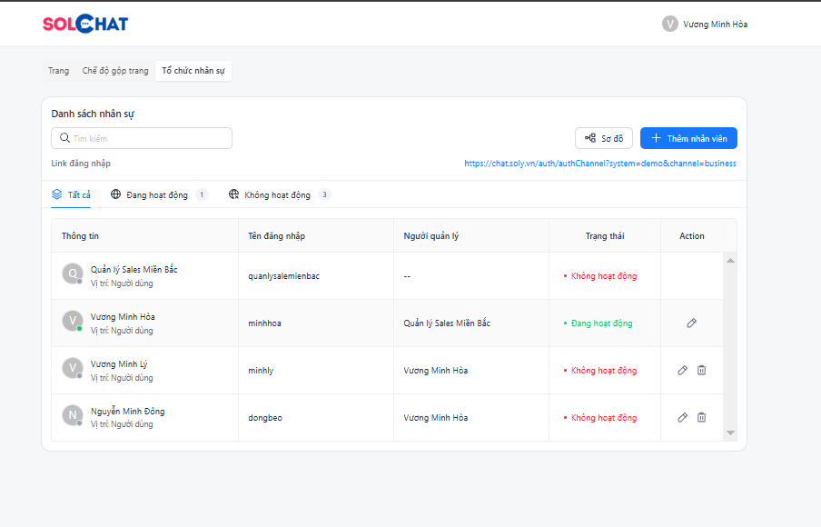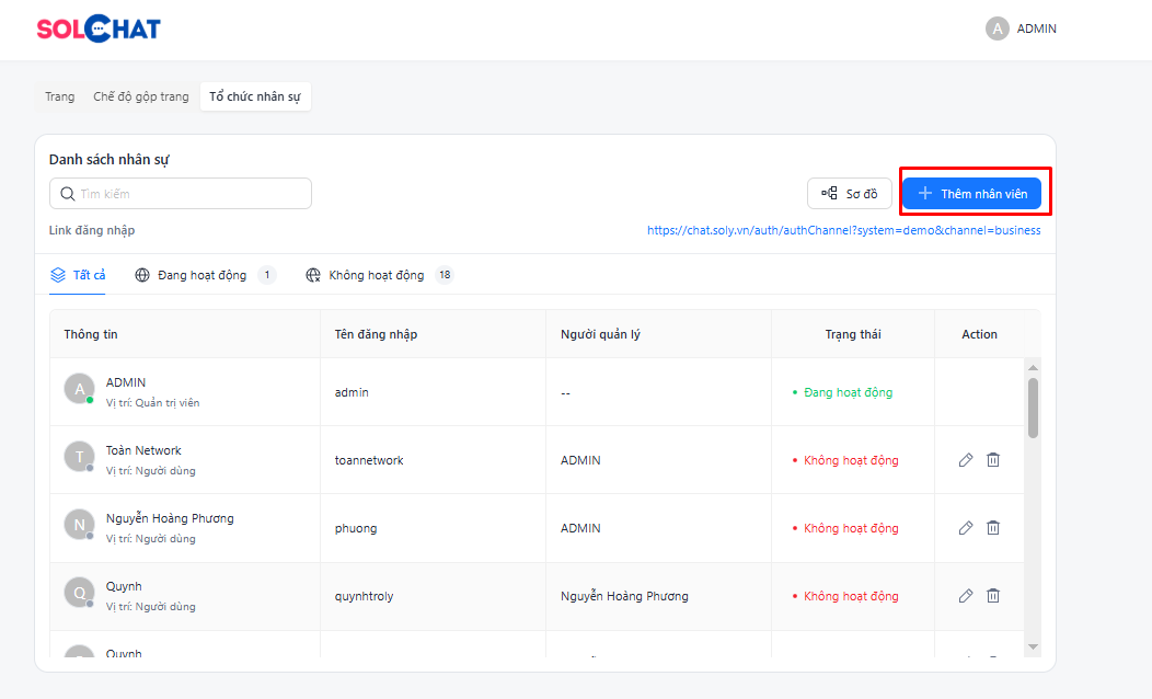 Bước 2: Tại đây, người dùng click chọn button ‘’Thêm nhân viên’’ phía góc phải màn hình.
